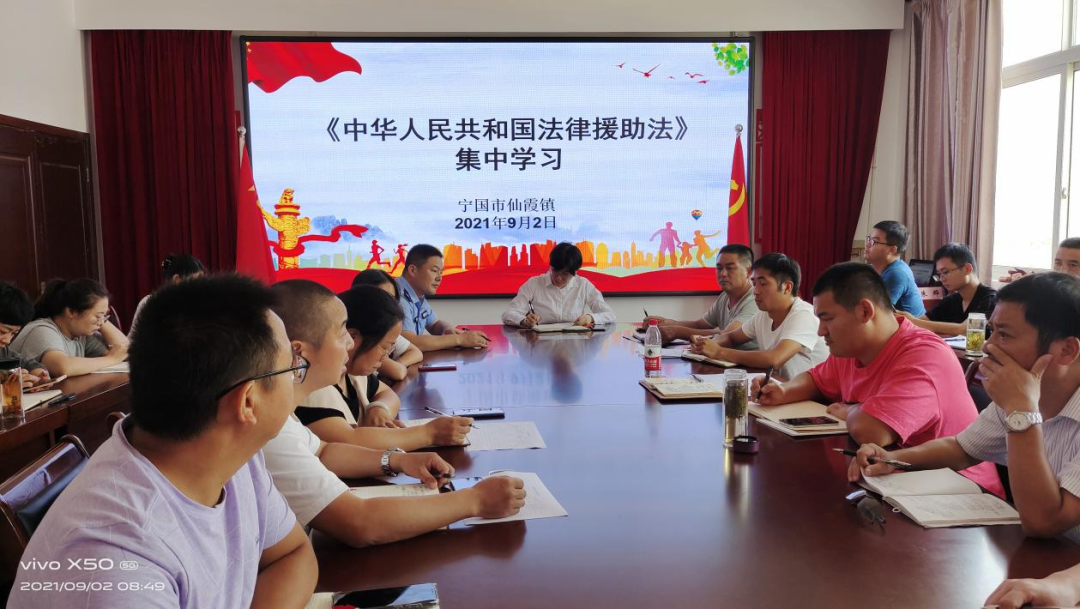 9月2日,仙霞镇为做好城乡困难群体法律援助民生工程,组织镇政法委员,司法所、综治办、党政办、妇联及各村法律援助联系点联络员开展《中华人民共和国法律援助法》集中学习活动。