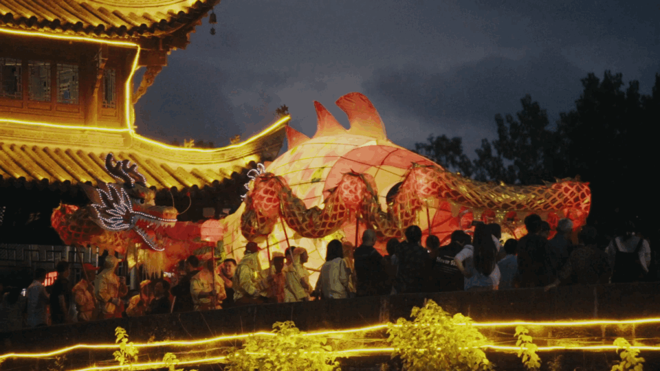 龙灯、鱼灯、河灯“三灯”交错辉映