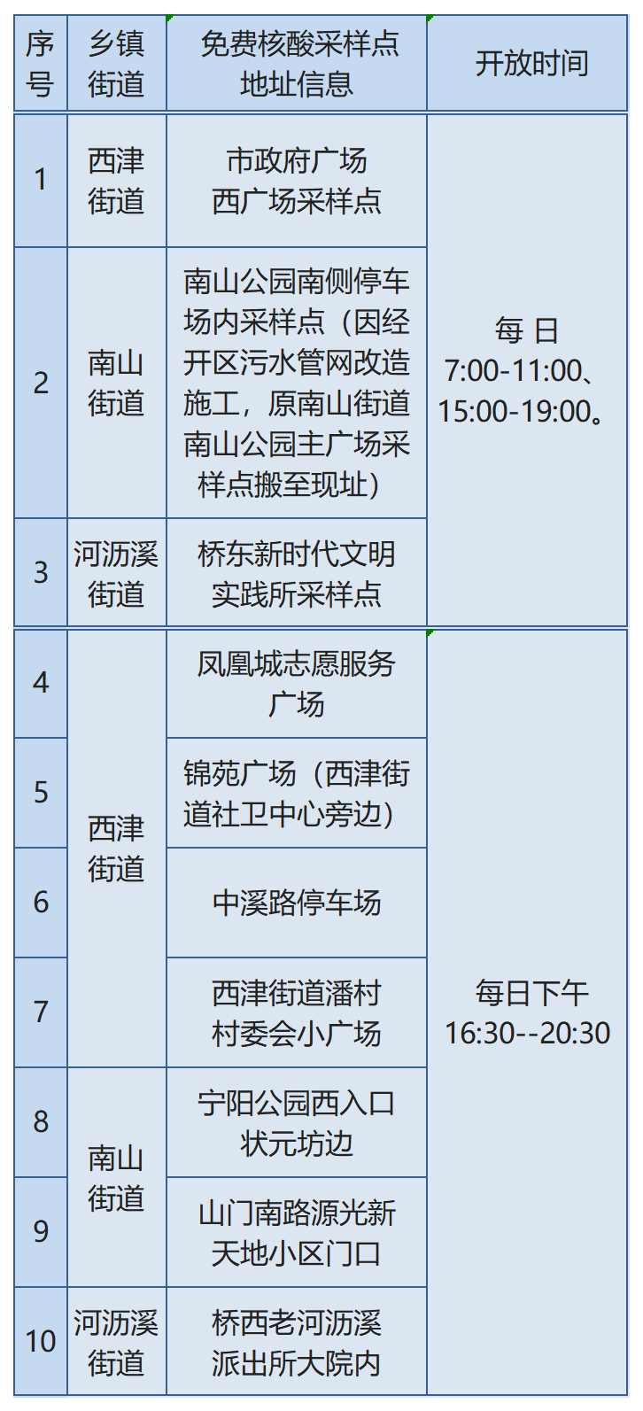 免费核酸采样点地址信息