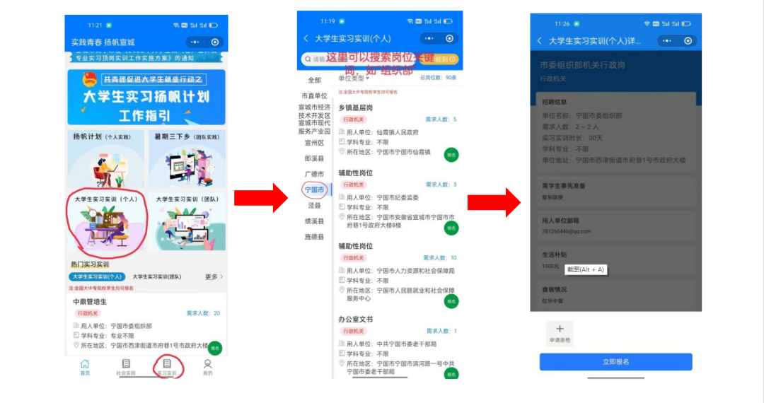 为进一步贯彻“人才强市”战略,深入推进大学生社会实践、专业实习、顶岗实训基地建设,为在校大学生提供实习锻炼机会,宁国市正在面向高校将招募600名大学生参加专业实习、顶岗实训