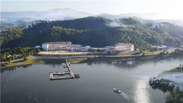 该工程是对现有青龙湾游客接待中心综合楼进行装饰装修,不改变主体结构,不增加建筑面积,具体包括建筑内部空间装修及建筑外立面更新等内容。方案结合功能对建筑内部空间进行了分区,并优化了建筑立面材质。