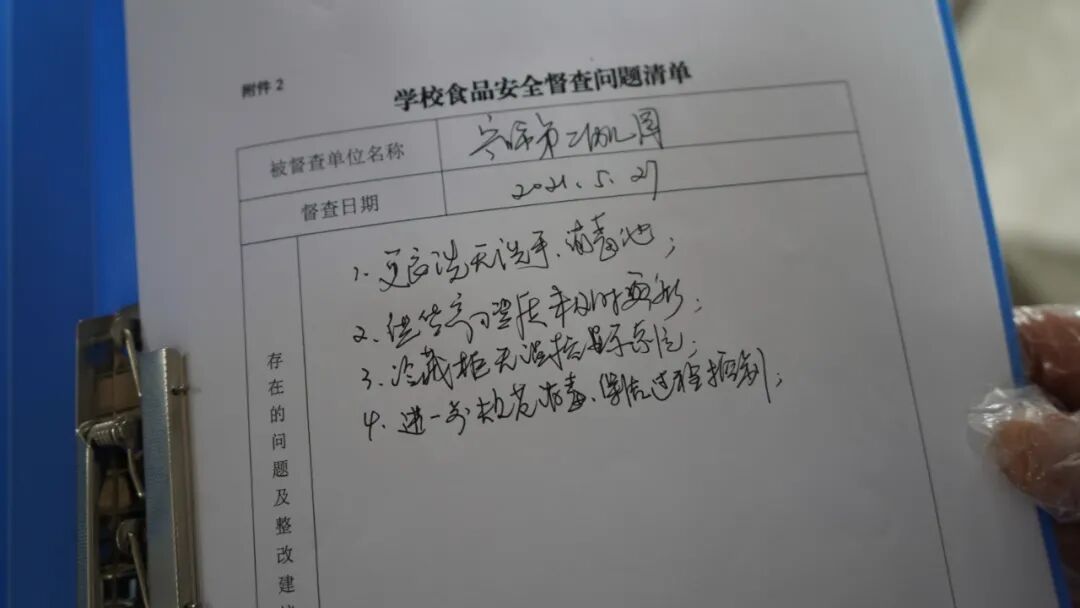 工作人员共检查了多项内容,经检查,两所幼儿园食堂管理操作规范,食堂总体情况良好。但仍存在一些未达标不完善的问题,工作人员要求学校限期整改,并在整改时间结束后再次进行检查。