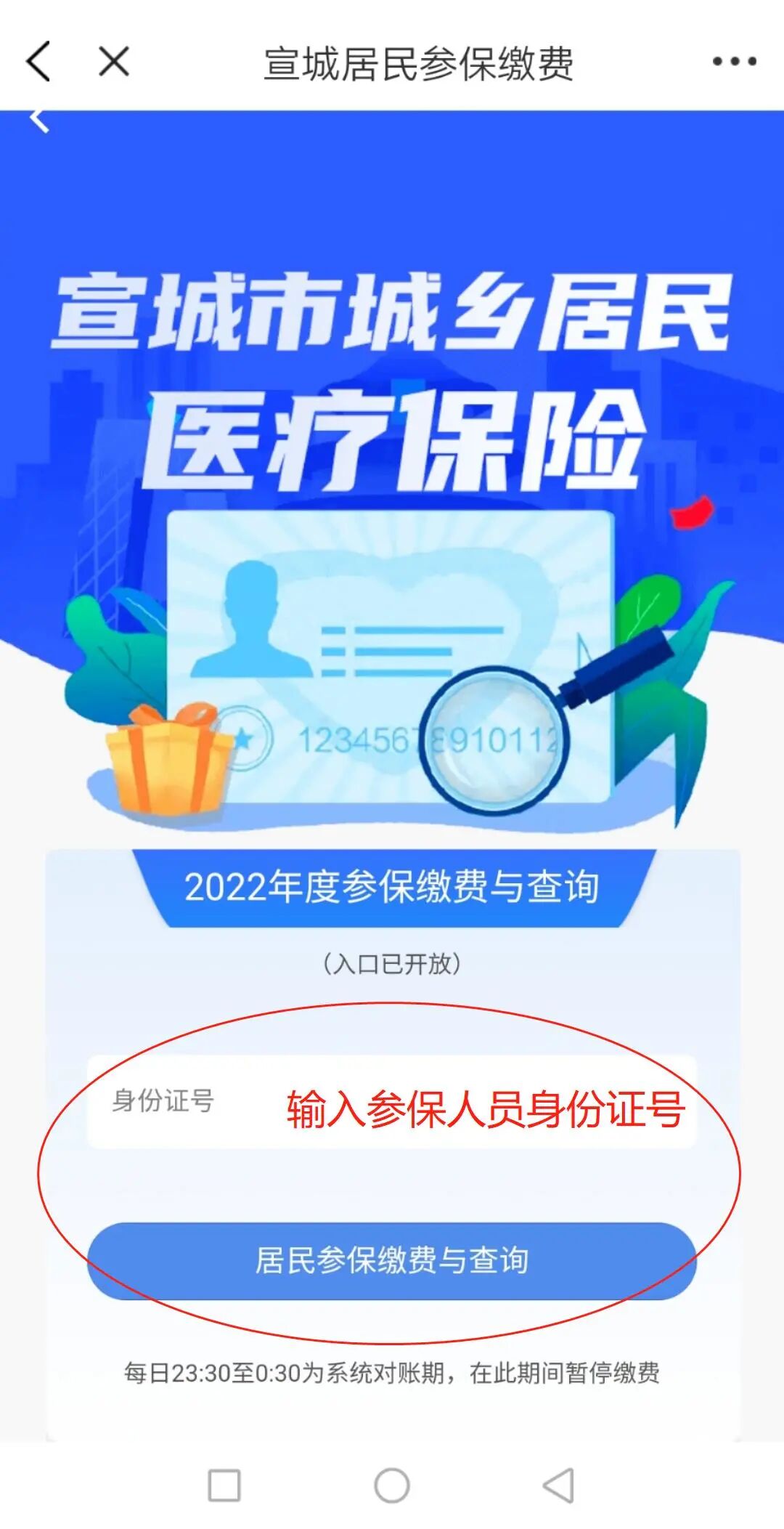 第三步:找到下方【2022年度居民参保缴费与查询】,输入【身份证号】