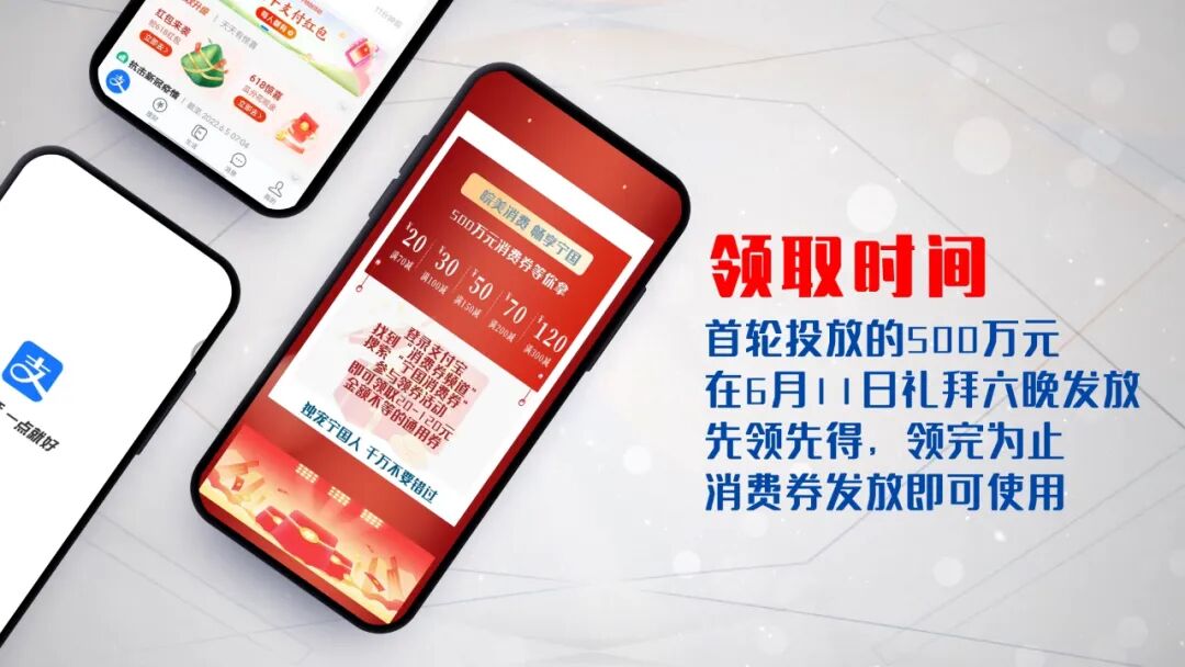 首轮投放的500万元,在6月11日礼拜六晚八点发放,先领先得,领完为止。消费券发放即可使用。
