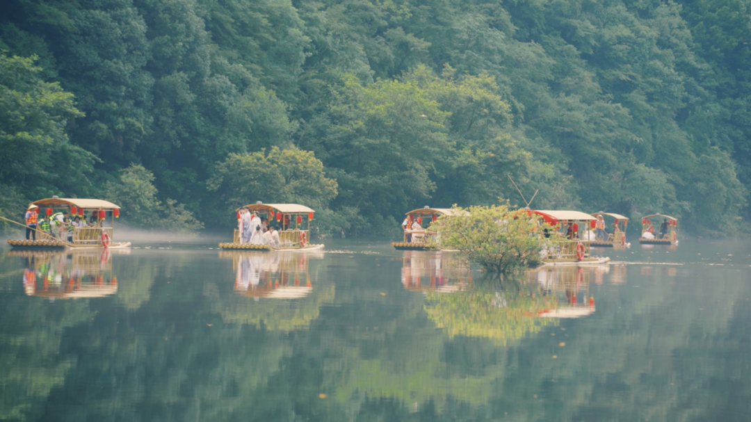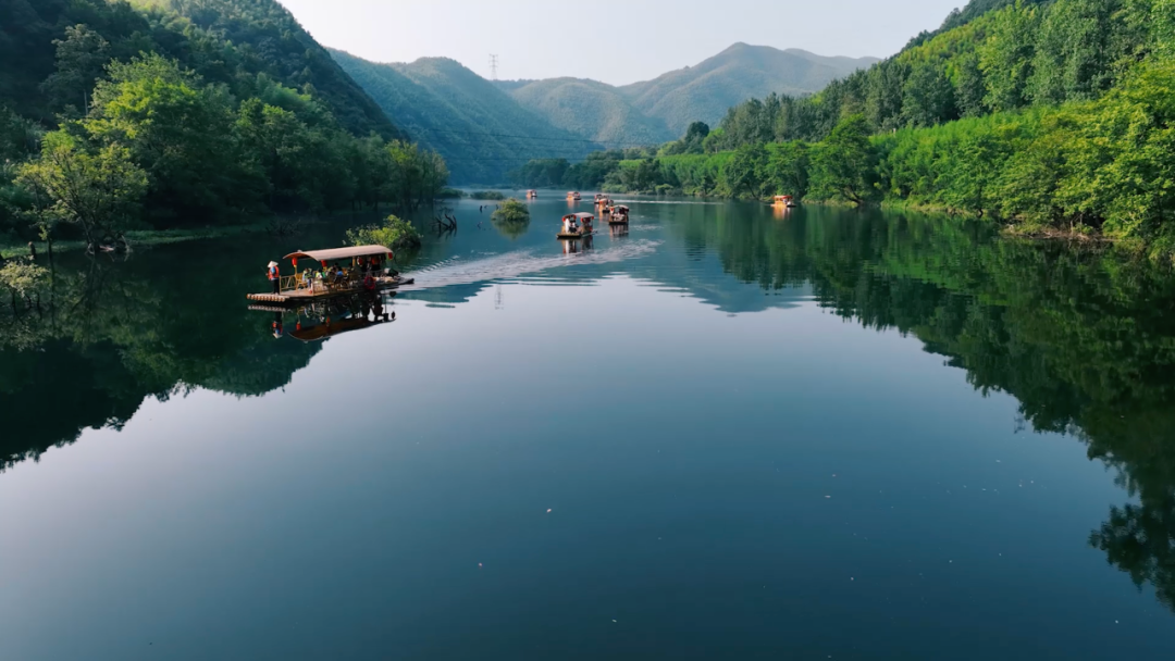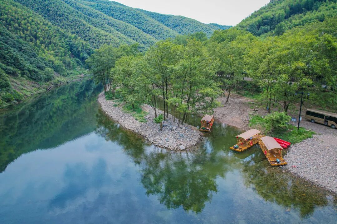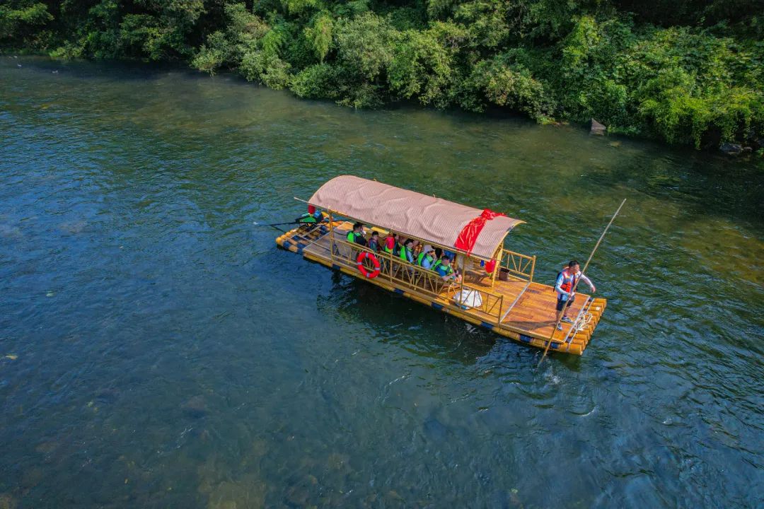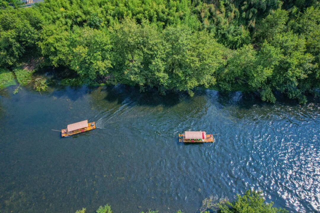 河道观光全程约5公里,行程约1小时,沿途河流蜿蜒曲折,两岸青山环绕,竹筏前行,感觉穿梭在万亩竹海中;沿河两岸民居错落有致;河水清澈鱼翔浅底;野鸭四处游荡,白鹭水面争鸣;若恰逢水面烟雾浩渺,竹筏缓行,蒙胧之中,胜似仙境!