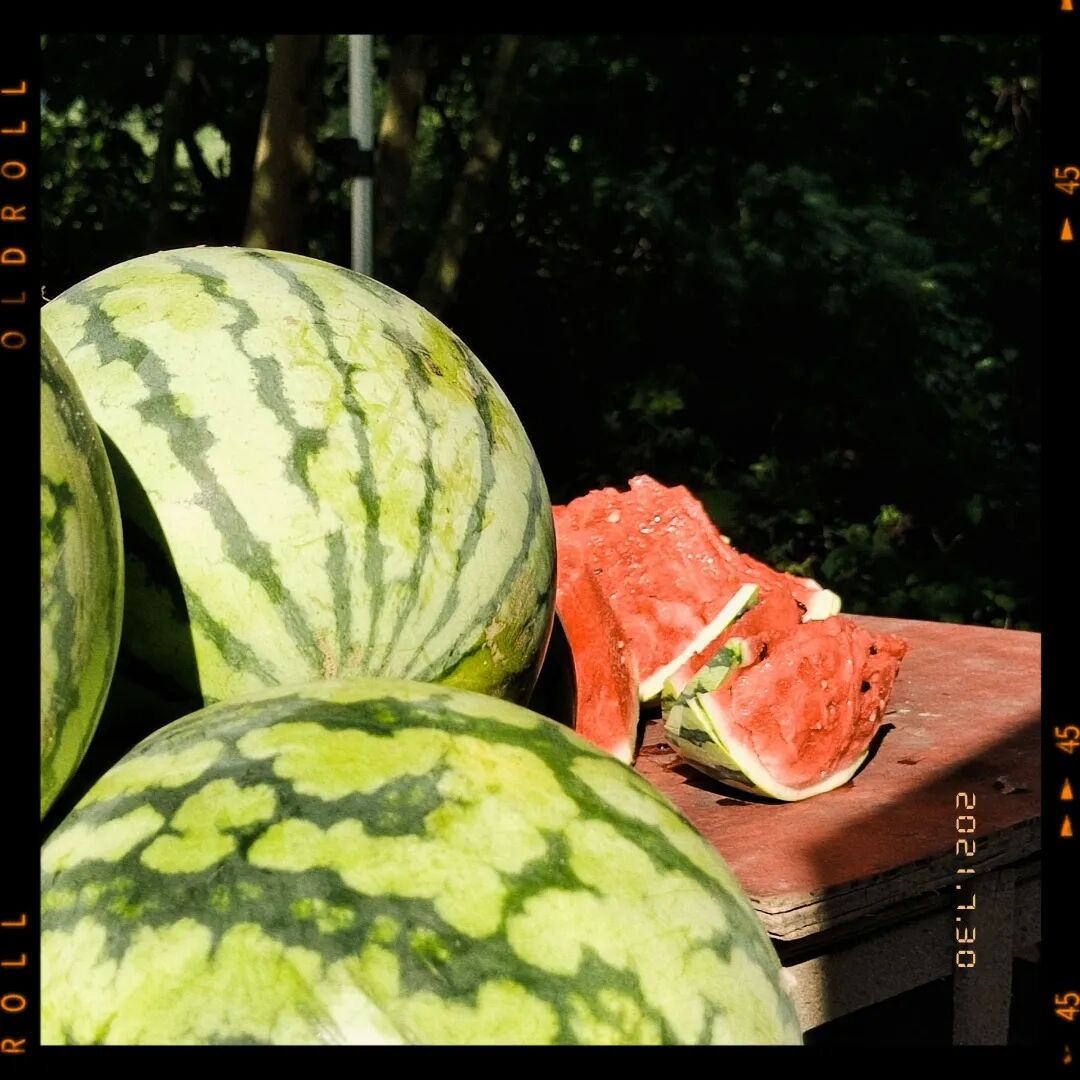 西瓜都是老板自家种植,近百余亩的西瓜种植基地,大棚往往离摊子不远,如果你想要新鲜刚出炉的西瓜,老板也会带你到他的大棚随你挑选。