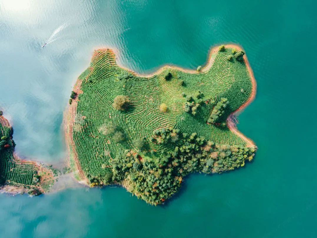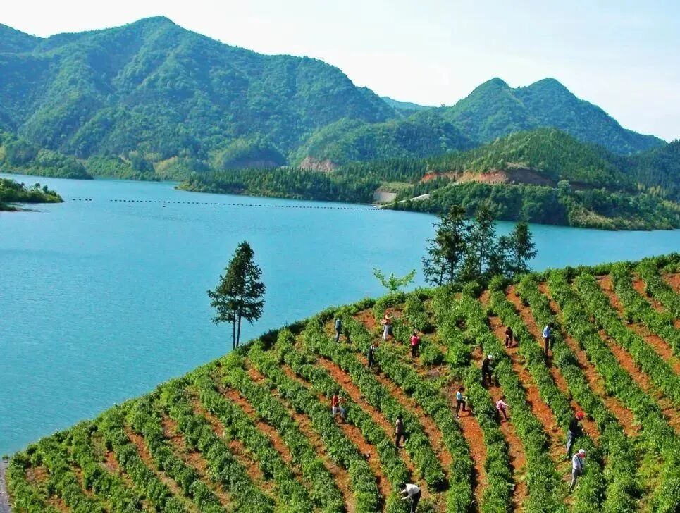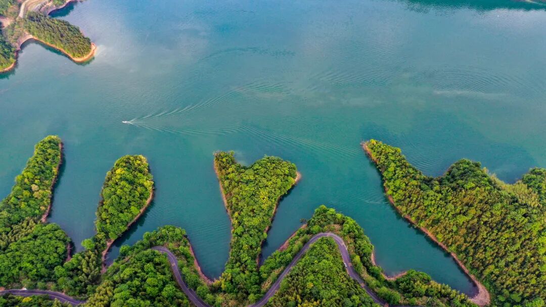 于码头寻一艘游艇,穿过蒙蒙雨雾,经过碧绿茶山,浪花在身侧不断飞溅。青龙湖就如同一颗璀璨的明珠,镶嵌在这片群山之中,宁静的气息与满眼的绿意令人陶醉……这里没有大都市里的雾深霾重,也没有来自外界的过多喧嚣。
