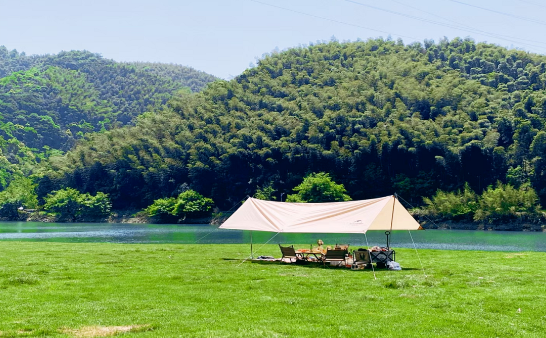 在真也的浅滩,草坪,搭一个帐篷,支一个天幕,简单的装备,远离城市,亲近自然,生活中不止工作,还有诗和远方。