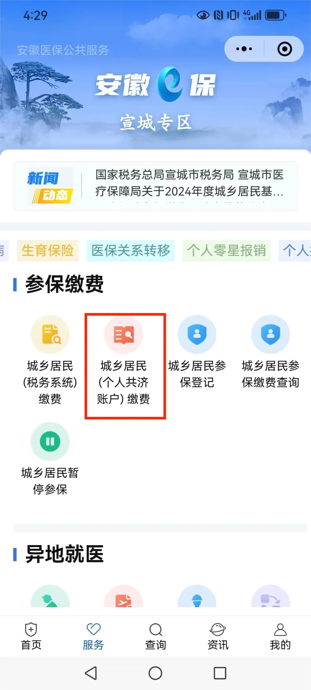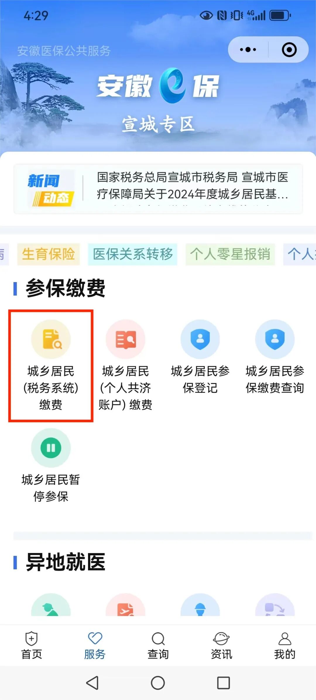 1.线上参保:可通过“微信”、“支付宝”搜索“安徽医保公共服务”小程序,进行参保登记后,再进行缴费操作。