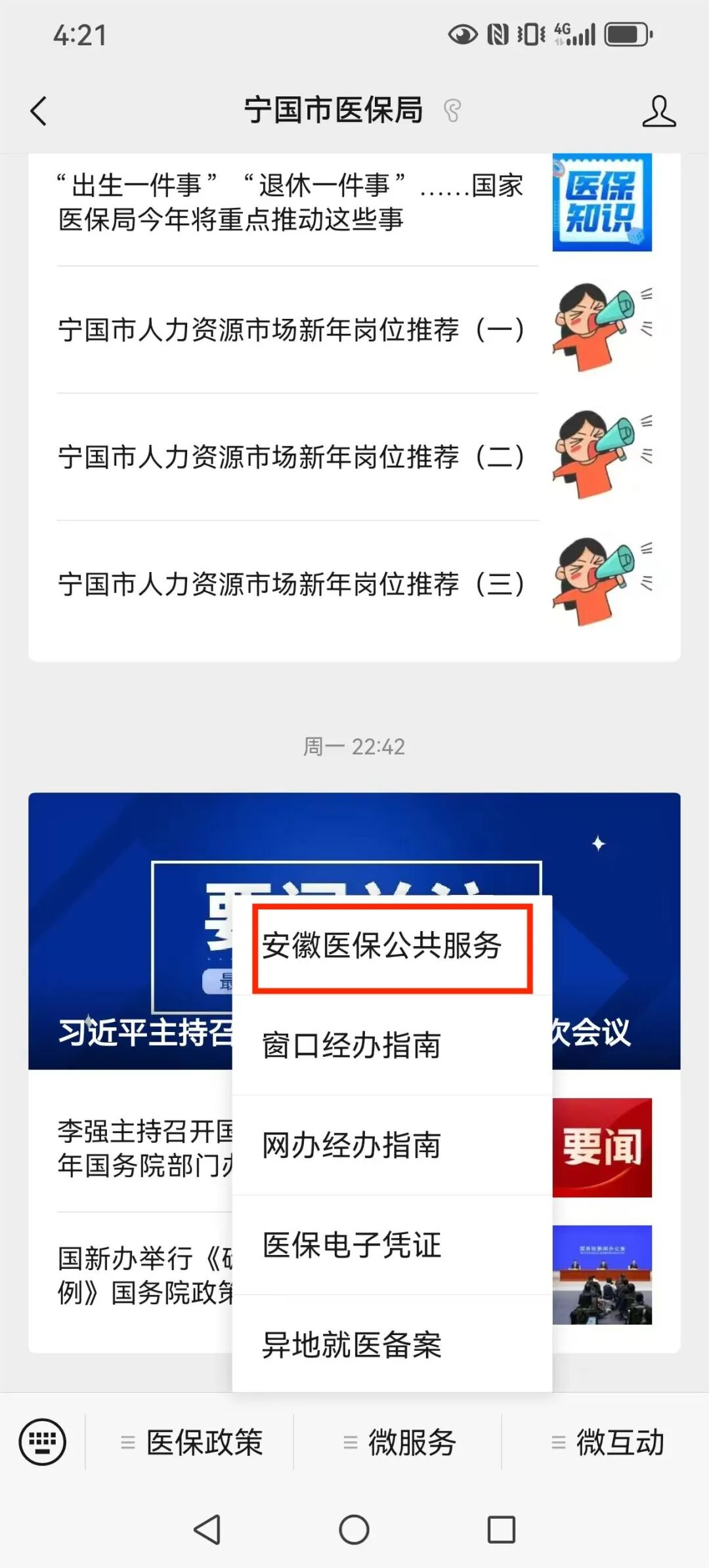 (一)打开微信关注“宁国市医保局”微信公众号,进入公众号之后选择“安徽医保公共服务”点击进入小程序;也可在微信、支付宝搜索框中直接搜索“安徽医保公共服务”进入小程序,若未激活医保电子凭证需先进行激活,激活后选择“宣城”专区进入服务界面。